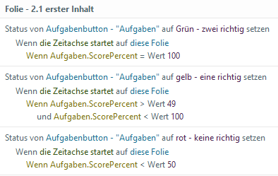 Zusätzlich zu den Triggern habe ich auch gelernt, wie man “Zustände” verwendet. Zustände ermöglichen es, Elemente in einer Folie zu ändern, basierend auf den Aktionen der Lernenden. Das eröffnete eine Welt von kreativen Möglichkeiten, um den Lernenden eine bessere Erfahrung zu bieten.